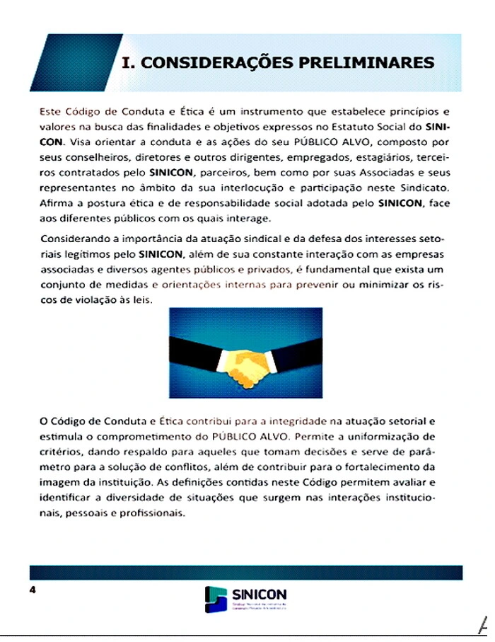 - Associado ao Instituto Ethos: Instituto Ethos e a Rede Brasil do Pacto Global da ONU, em parceria com empresas e entidades setoriais de engenharia e construção, uniram esforços em uma ação coletiva para a criação do Movimento pela Integridade do Setor de Engenharia e Construção (MISEC). O SINICON faz parte e incentiva suas associadas a participar deste movimento.