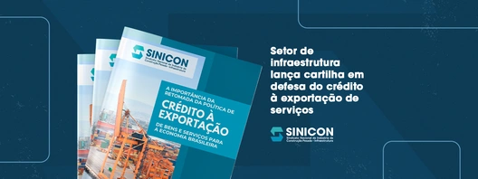 O SINICON, em parceria com outras oito entidades representativas do setor (ABEMI, ABDIB, AEB, AEERJ, ANEOR, BRASINFRA, ABICOPI e SINAENCO), acaba de lançar a cartilha “A importância da retomada da política de crédito à exportação de bens e serviços para a economia brasileira”.